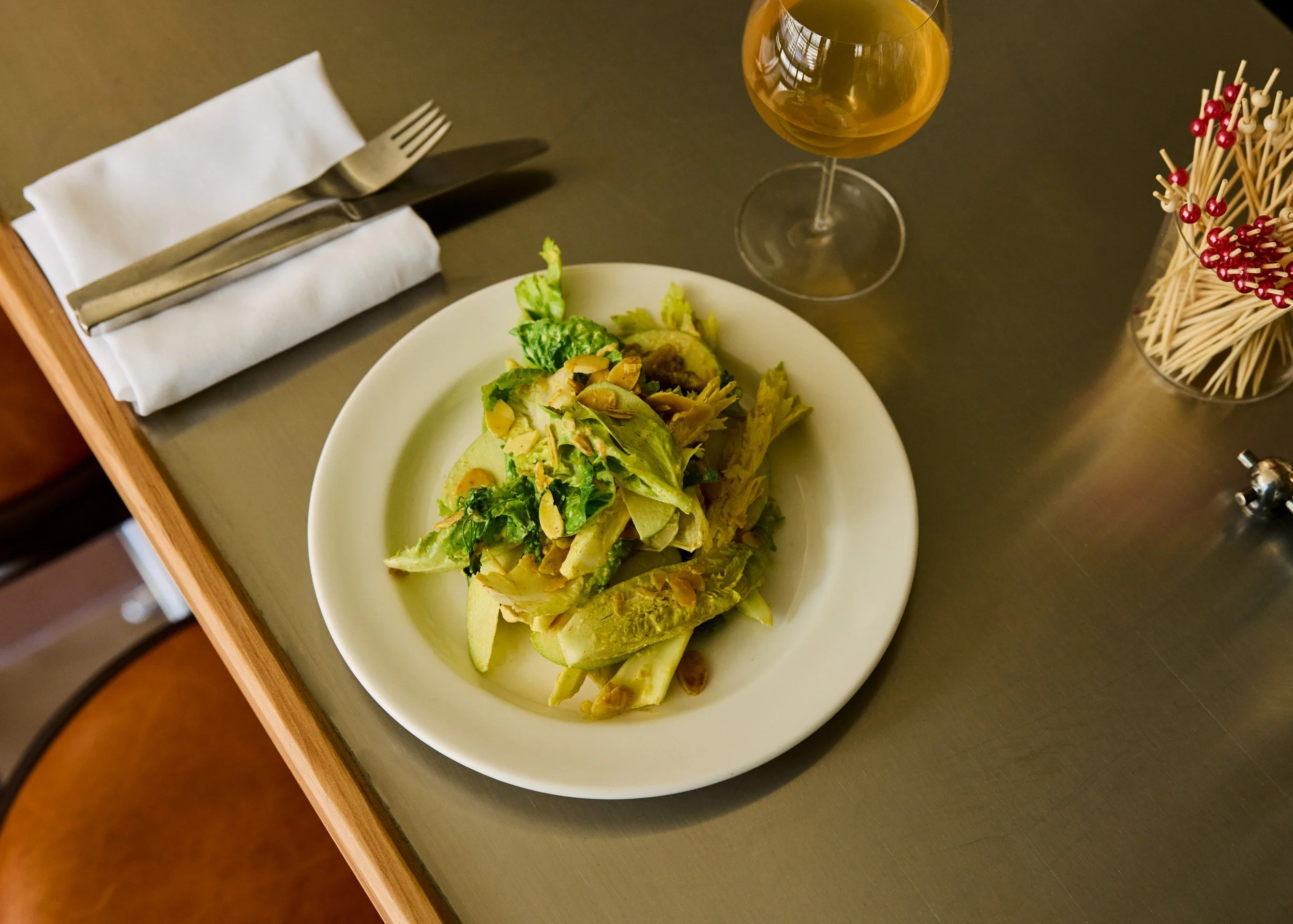 with curried coronation salad cream & raisins & almonds